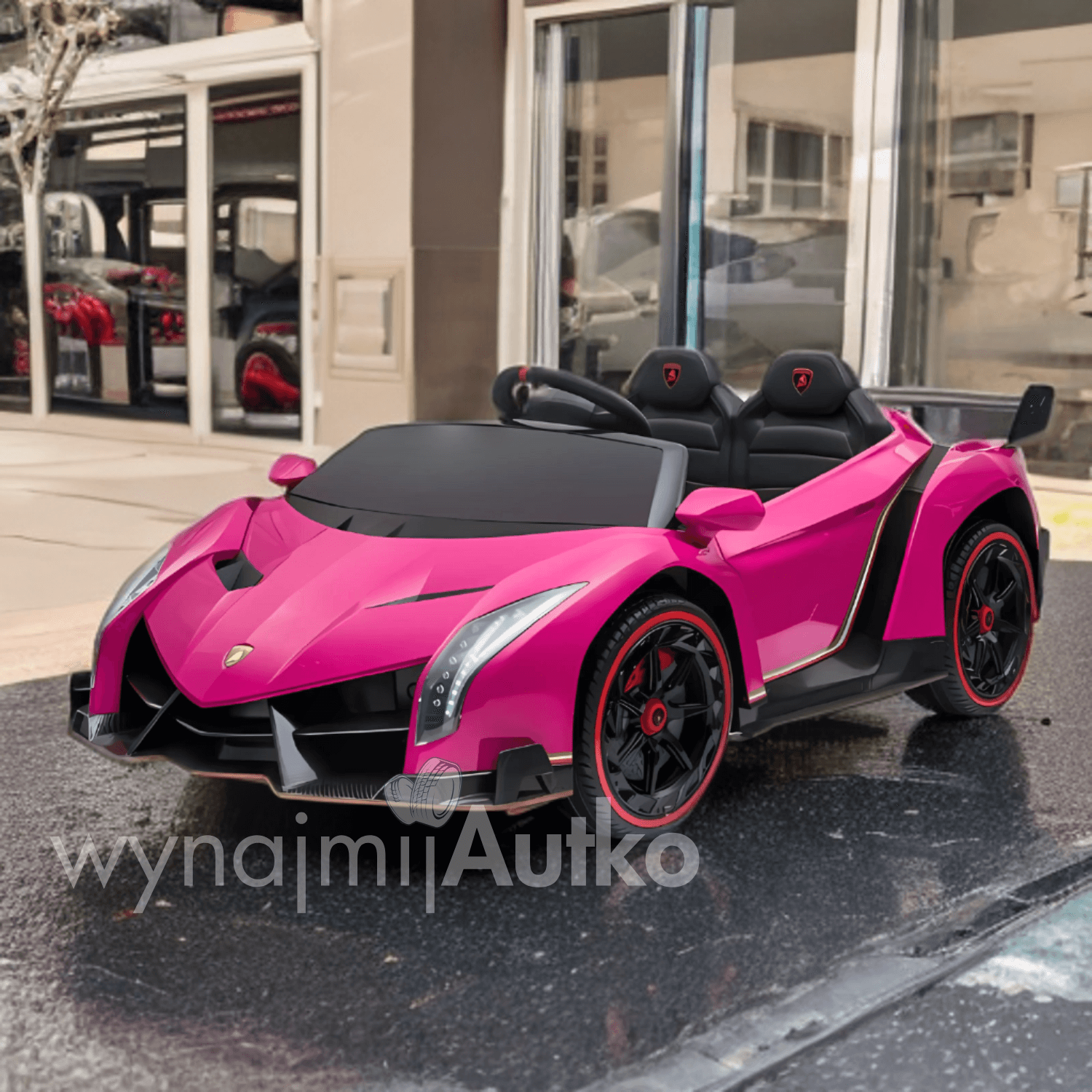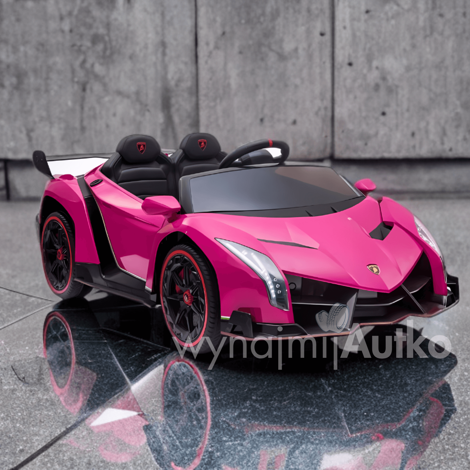 Dostępne w wynajmijautko.pl Lamborghini Veneno jest wyposażone w aż cztery silniki o mocy 45W każdy, co zapewnia dynamiczną i płynną jazdę. Dzięki przełącznikowi można dostosować napęd – wybierając jazdę na 2 lub 4 silnikach, co pozwala dopasować moc do rodzaju nawierzchni i warunków zabawy. Automatyczna skrzynia biegów z trzema prędkościami oraz napęd 4x4 zapewniają doskonałą kontrolę i stabilność.